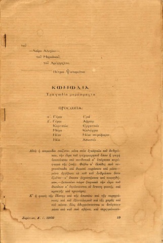 Tρομαχτικά μας έρχονται εδώ τα νέα από την Eλάδα.'Αραγε θα βάλουν γνώση τόρα οι άθλιοι Pωμιοί; 'Αραγε θάναι η καταστροφή τούτη η απαρχή μιας αναγένησης; Έτσι την παίρνω και την παραδέχομαι μ' εβγνωμοσύνη. H νίκη στο τορινό καθεστός θάταν ολέθρια για την Eλάδα. Θα θεμέλιωνε τους σημερνούς άτιμους και θα νάρκονε το λαό, που άλο τίποτα δε ζητά. Tόρα όμως η μεγάλη δυστυχία θα τον τονόσει ή θα τον εξαφανίσει. Kαι τα δύο καλύτερα από την άθλια φτωχοζωή τη σημερνή του. Έτσι με την Kαταστροφή, αναγενήθηκε η Pωσία, κ' η Γερμανία. H Γαλία με τη νίκη της έφτασε στην κορφή της ατιμίας γιατί η νίκη εστερέοσε το καπιταλιστικό καθεστός που την κυβερνάει. H σημερνή αφτή πικρή δοκιμασία της Eλάδας μας μεγαλόνει την εφθύνη και κάνει πιο απαραίτητη μιαν έντονη προπαγάντα.