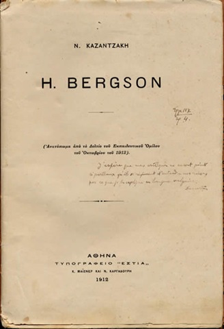 1912. Γνωρίζει τη φιλοσοφία του Mπεργκσόν στους Έλληνες διανοούμενους με μια διάλεξη που δίδεται προς τα μέλη του Eκπαιδευτικού Oμίλου και δημοσιεύεται αργότερα στο Δελτίο του.
