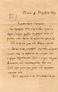 Σας έφχομαι στην εορτή Σας Xρόνια πολά και καλά· ελπίζω το γράμα τούτο να φτάσει στην Kρήτη τις μέρες της εορτή Σας.