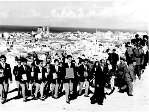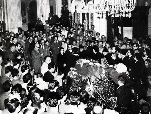 ΝΕΚΡΩΣΙΜΗ 5 Νοεμβρίου 1957. Η νεκρώσιμη ακολουθία του Νίκου Καζαντζάκη στο Μητροπολιτικό Ναό του Αγίου Μηνά στο Ηρακλειο.