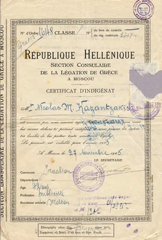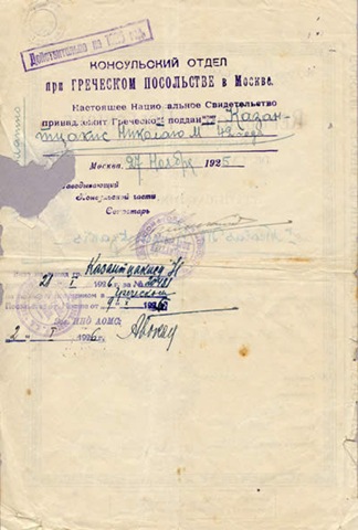 Πιστοποιητικό ιθαγένειας για το ταξίδι του στη Ρωσία.