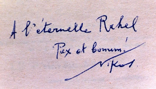 ραχηλαφιερωση Ιδιόχειρη αφιέρωση του Νίκου Καζαντζάκη στην "αιώνια Rahel".