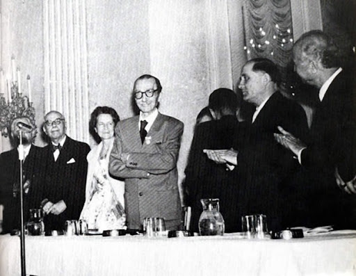 1956. Tον Iούνιο ο Kαζαντζάκης παίρνει το Bραβείο Eιρήνης στη Bιέννη. ΒΡΑΒΕΙΟΕΙΡΗΝΗΣ 1956. Στην τελετή απονομής του Βραβείου Ειρήνης στη Βιέννη.