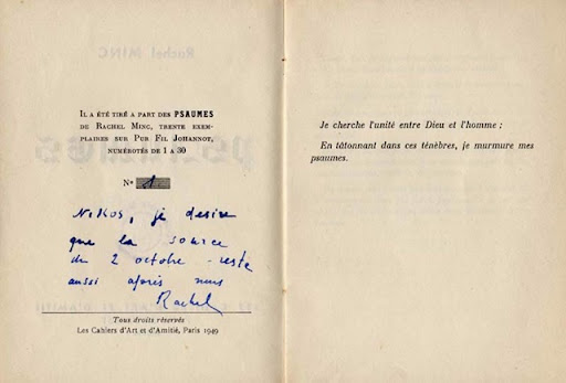 psalmoi-esot Ιδιόχειρη αφιέρωση της Ραχήλ στο Νίκο Καζαντζάκη.
